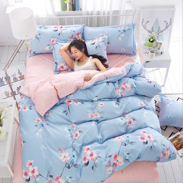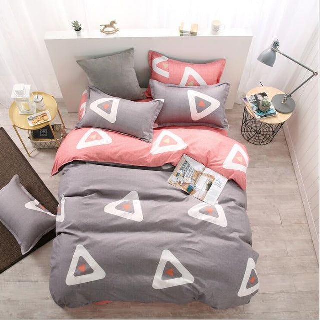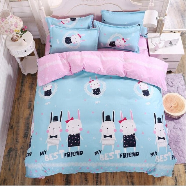 Cute cartoon lattice star cloud Creativity British style 4pcs/3pcs Duvet Cover Sets Soft Polyester Bed Linen Flat Bed Sheet