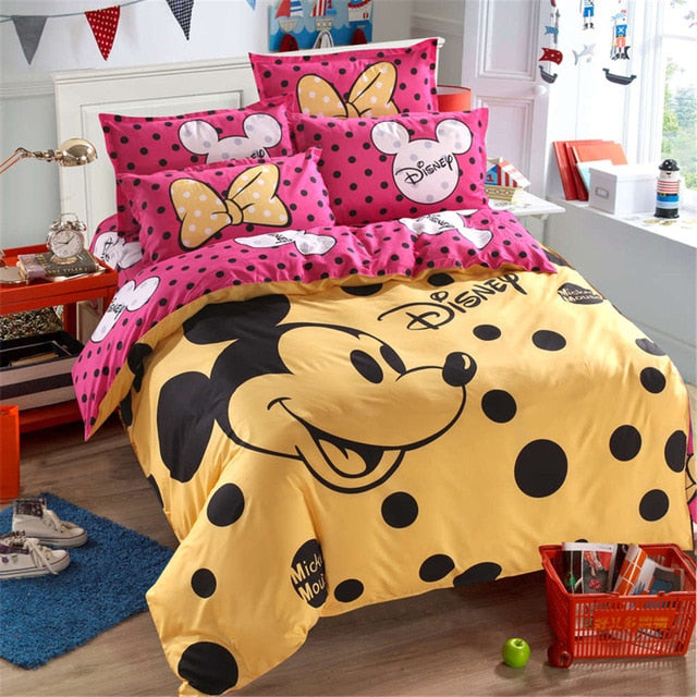 Disney Mickey Mouse Kids Bed Bedding Sets Cartoon Girls Duvet Cover Bedclothes Pillowcase Sheet 4PCS Children Soft Bed Linen Set