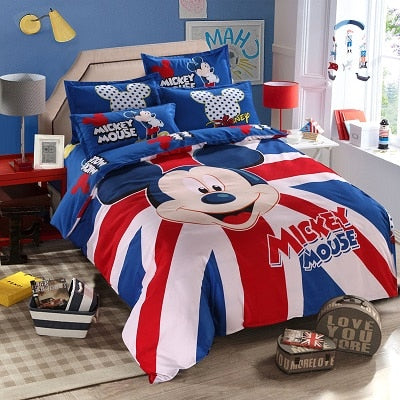 Disney Mickey Mouse Minnie Children Bedding Set Queen Full Single Size Duvet Cover Flatsheet Pillowcase Bedlinen Set for Kids