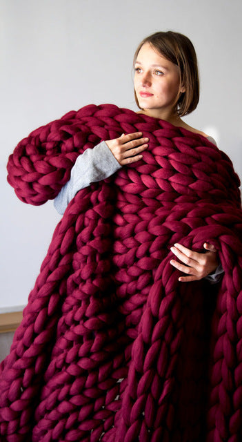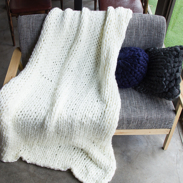 U-miss Fashion Hand Chunky Wool Knitted Blanket Thick Yarn Merino Wool Bulky Knitting Throw Blankets DropShipping 200X200CM
